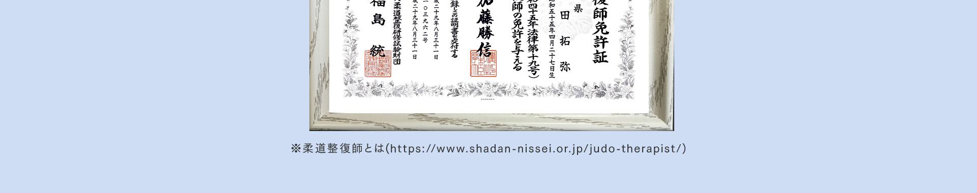 柔道整復師の国家資格を持ってますので、交通事故の対応も患者様の負担なく対応できます。